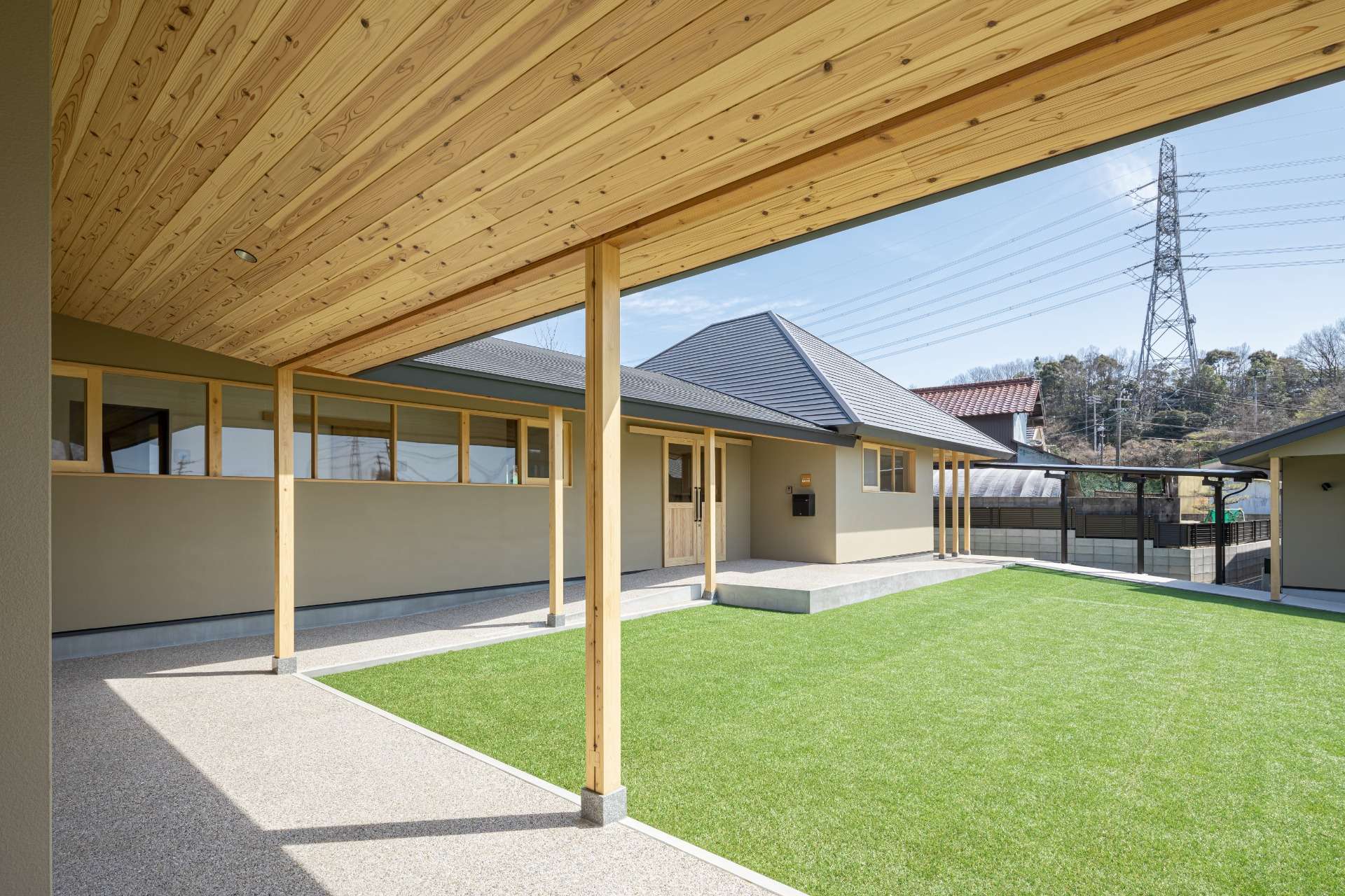 元々この場所に建てられていて施設として利用されていた民家を意識して、近隣の建物や風景に馴染むようなデザインに。